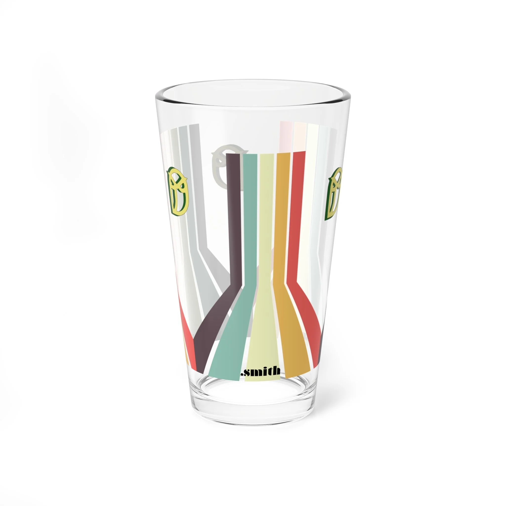 .this 16oz mixing glass brings color and calm to your home bar .thick, clear glass and a weighted base give each pour a steady feel; bright, retro-inspired stripes wrap around the vessel like a small celebration of mid-century design .use it as your go-to shaker when you’re riffing on cocktails, or as a daily tumbler when you want a little vintage cheer with your morning juice. It sits solid on the counter, feels balanced in the hand, and the durable print keeps those stripes lively wash after wash.